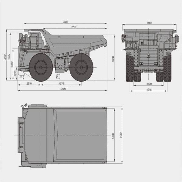SRT95C محرك السيارة لتفريغ الألغام قوة: 783kW حجم النقل: 60m³ سعة التحميل: 95t